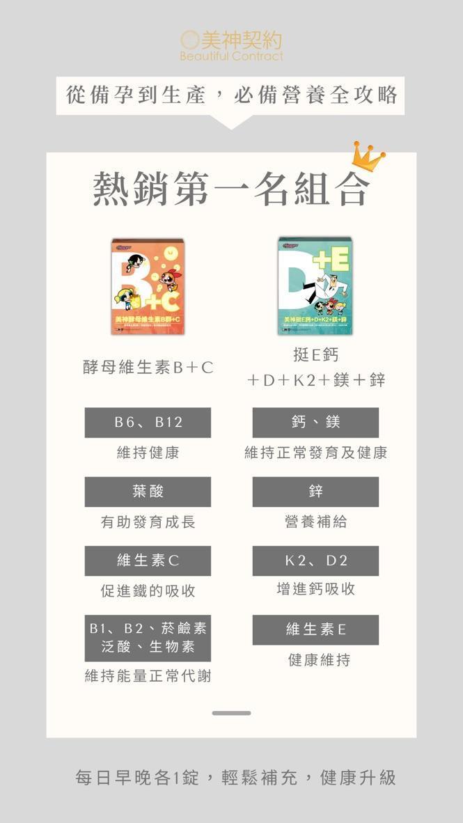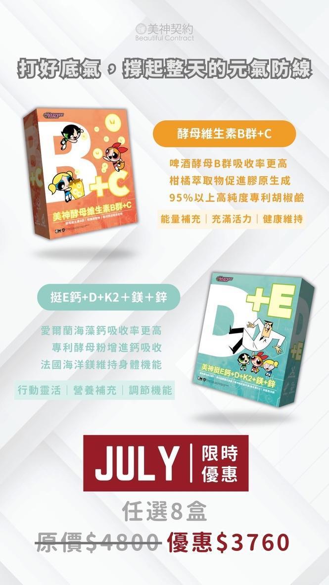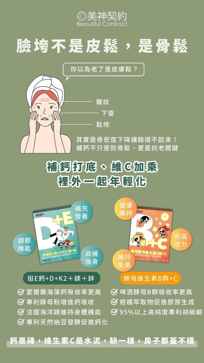 🚩美神酵母維生素B群+C/美神挺E鈣+D+K2+鎂+鋅